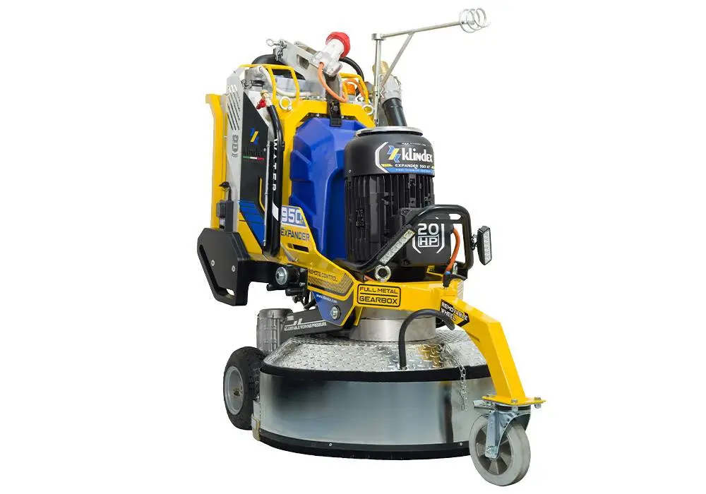 Az EXPANDER padlócsiszoló gép széria gépei méretüknek, a motorok teljesítményének, a változtatható fordulatszámnak és a hidraulikusan szabályozható szerszámnyomásnak köszönhetően a KLINDEX csiszológépek leghatékonyabbikai. A gépek egyaránt használhatóak beton, terrazzo, márvány, mészkő, gránit és gres felületek csiszolásához, attól függően milyen gyémántszereszámot választunk hozzá, illetve, hogy mely segédanyagokat alkalmazzuk. A gép öntömege és az állítható szerszámnyomás, "súlyozás" pedig olyan helyeken is hatékony lehet, ahol más csiszológépek nem boldogulnak. A gép egyaránt alkalmas száraz- és vizes csiszolásra, valamint polírozásra. Jelen modell, az EXPANDER 950 RX és AT távirányítós változatok!