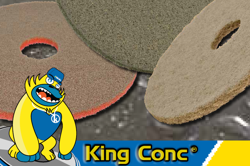 KING CONC® speciális padlókorongok gyémántszemcséikkel szárazon újítják fel és tartják karban a csiszolt beton és terrazzo padlókat.