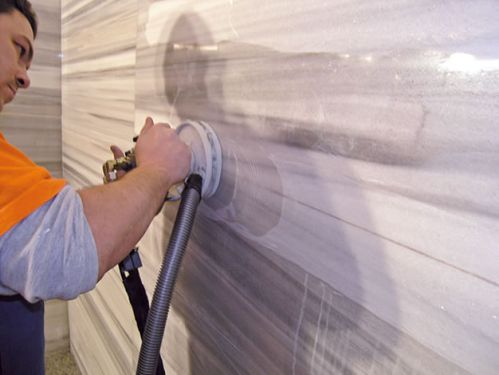 A VERTIKA egy speciális kifejlesztett, függőleges felületek csiszolására alkalmas csiszoló- és polírozó gép. A géptest maga tartalmazza a víztartályt, a motort és ehhez kapcsolódik egy hosszú hidraulikus kar melyen két gomb nyomásával szabályozhatjuk a vízadagolást. A kézi "karra" egy darab, csiszolótárcsát helyezhetünk fel, a durva csiszolótól egészen a finom polírozó szerszámig!